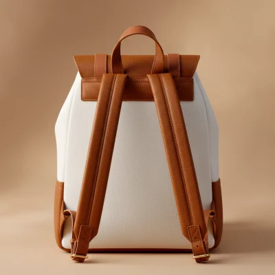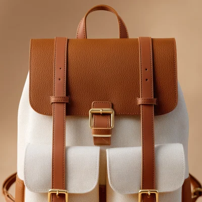 This backpack combines a textured canvas body with smooth leather accents to create a clean, versatile silhouette. The front pockets and buckle details add functional character while keeping the overall design composed and timeless.