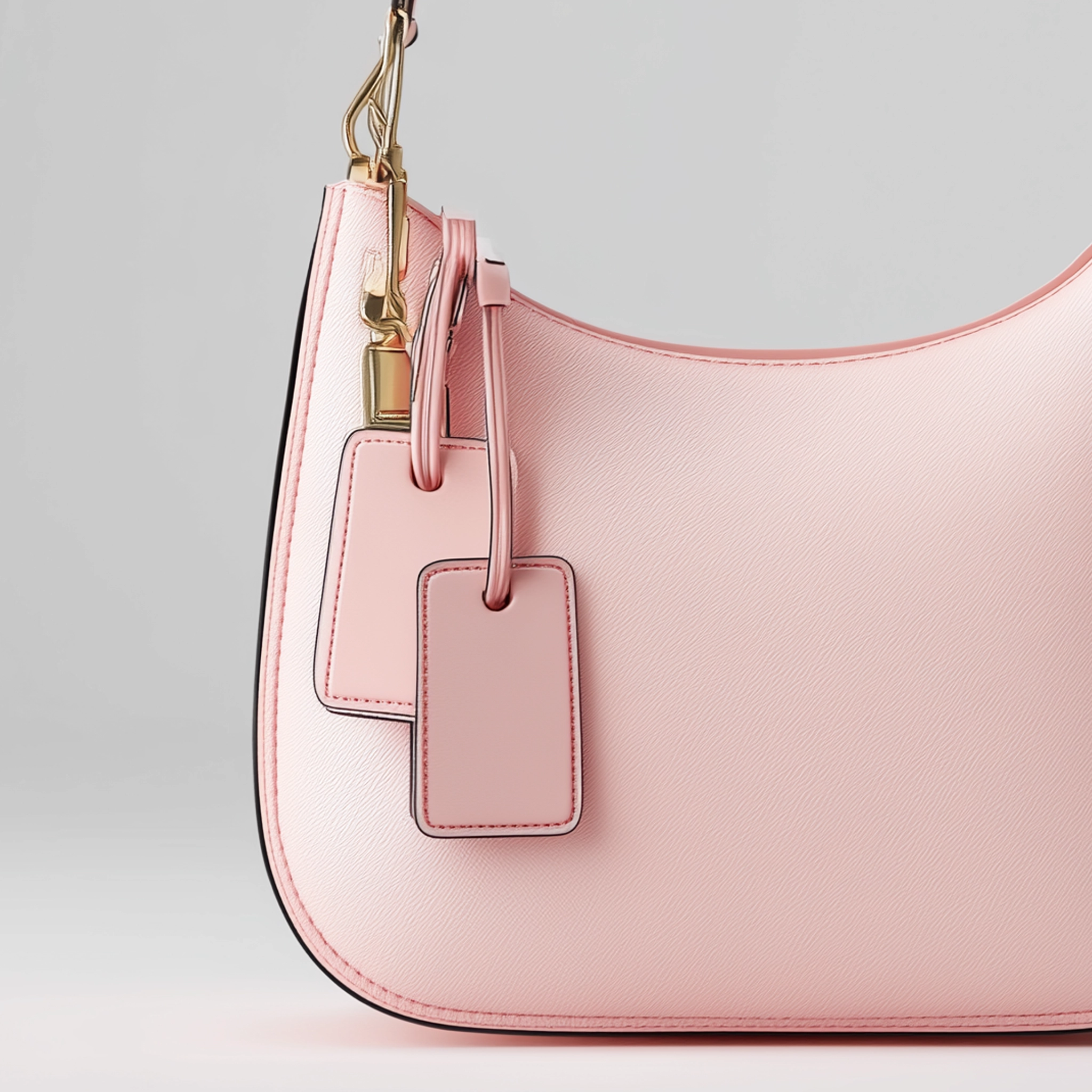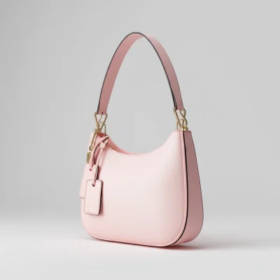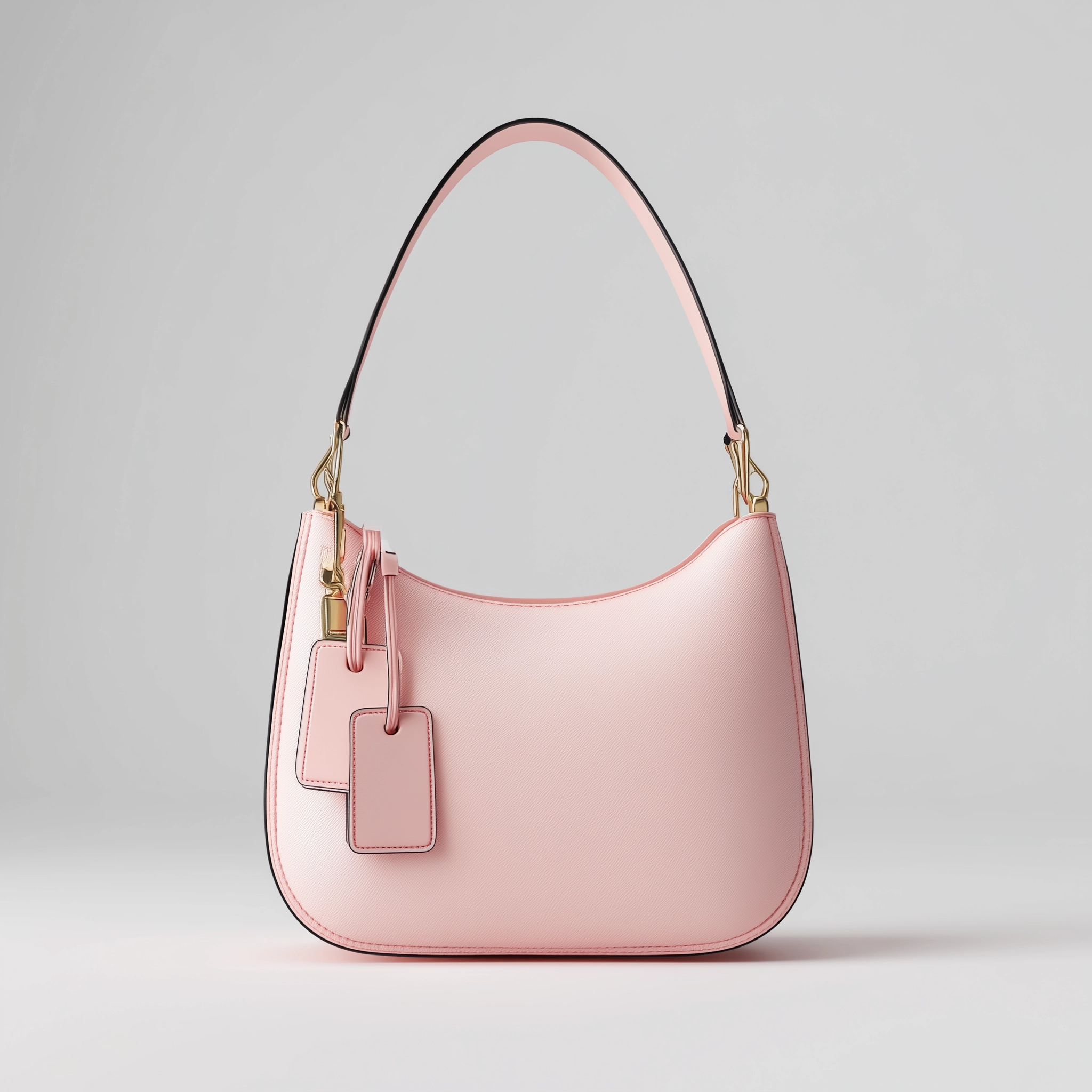 A softly contoured shoulder bag featuring a clean silhouette and subtle hanging tag accents.