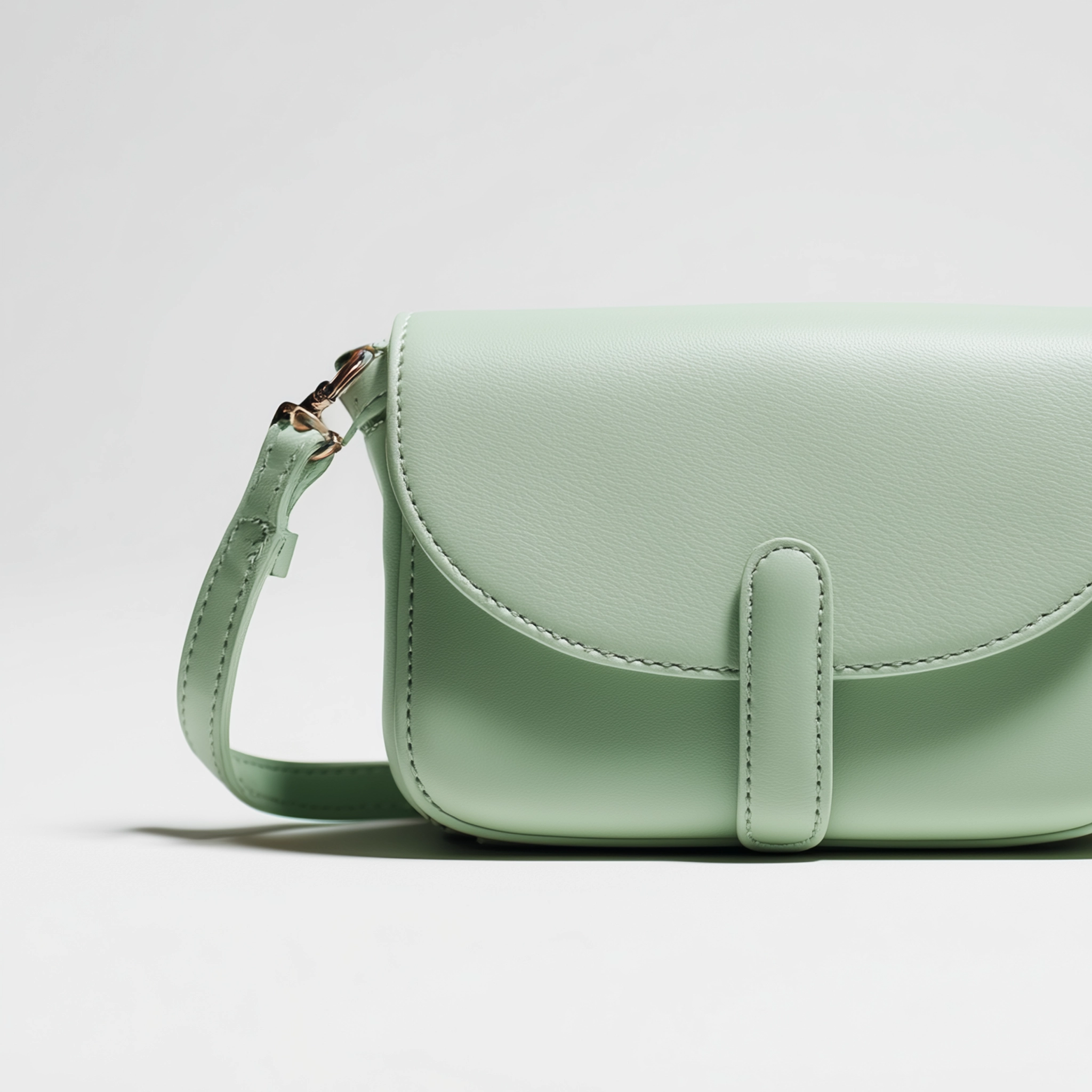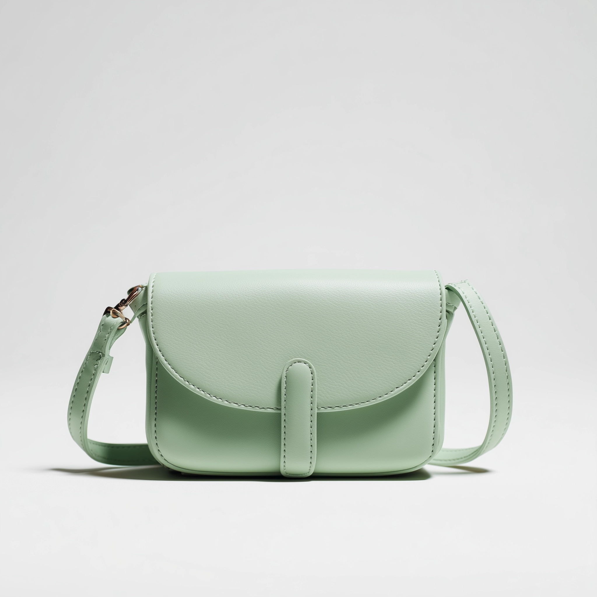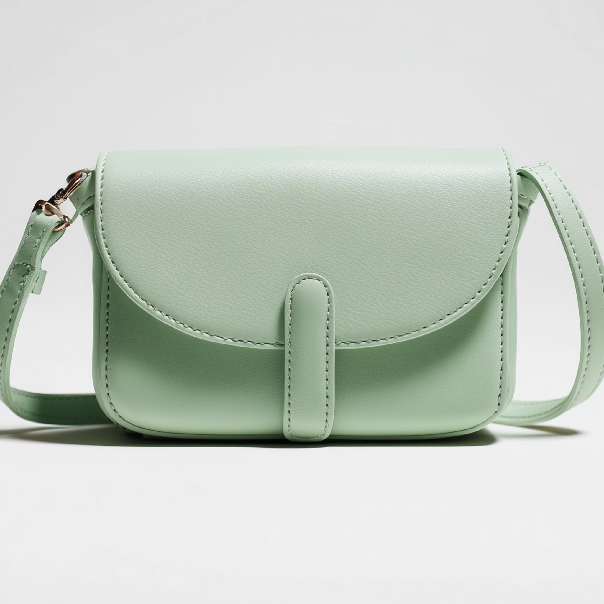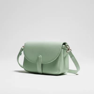 This crossbody bag is defined by its smooth silhouette and gently rounded flap, creating a balanced look that feels light and modern. The soft mint finish adds a subtle touch of color while keeping the overall design understated and versatile.