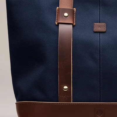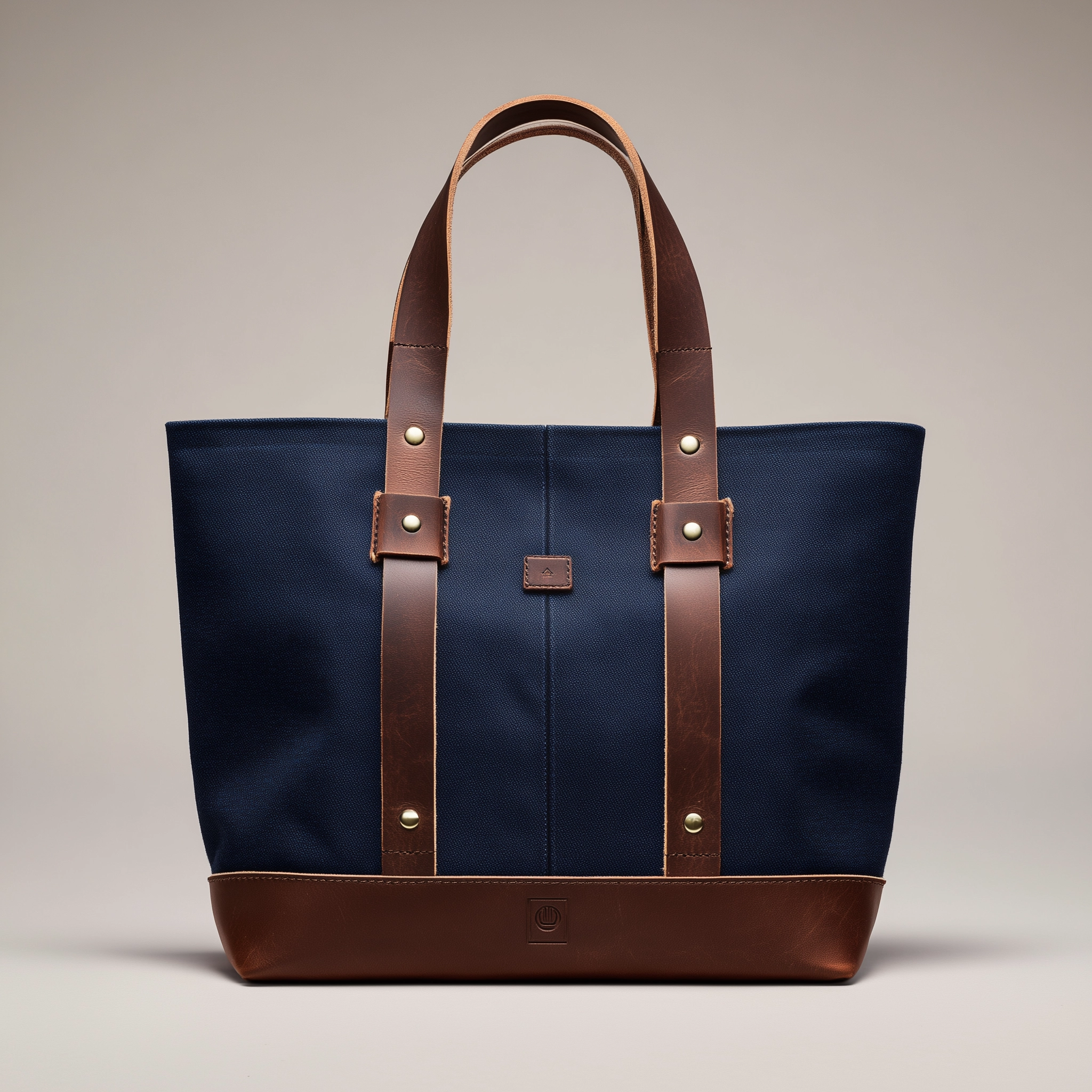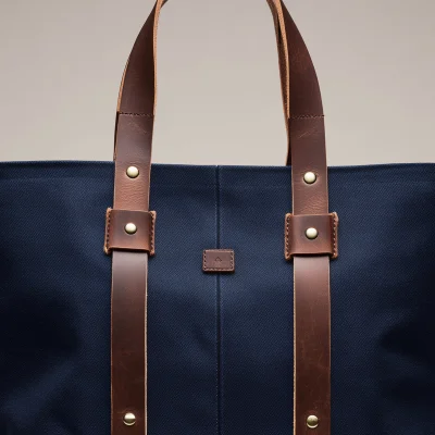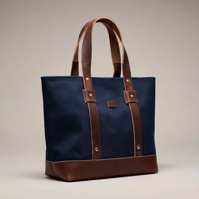 A clean, functional tote crafted from durable canvas with contrasting leather handles and a solid leather base.