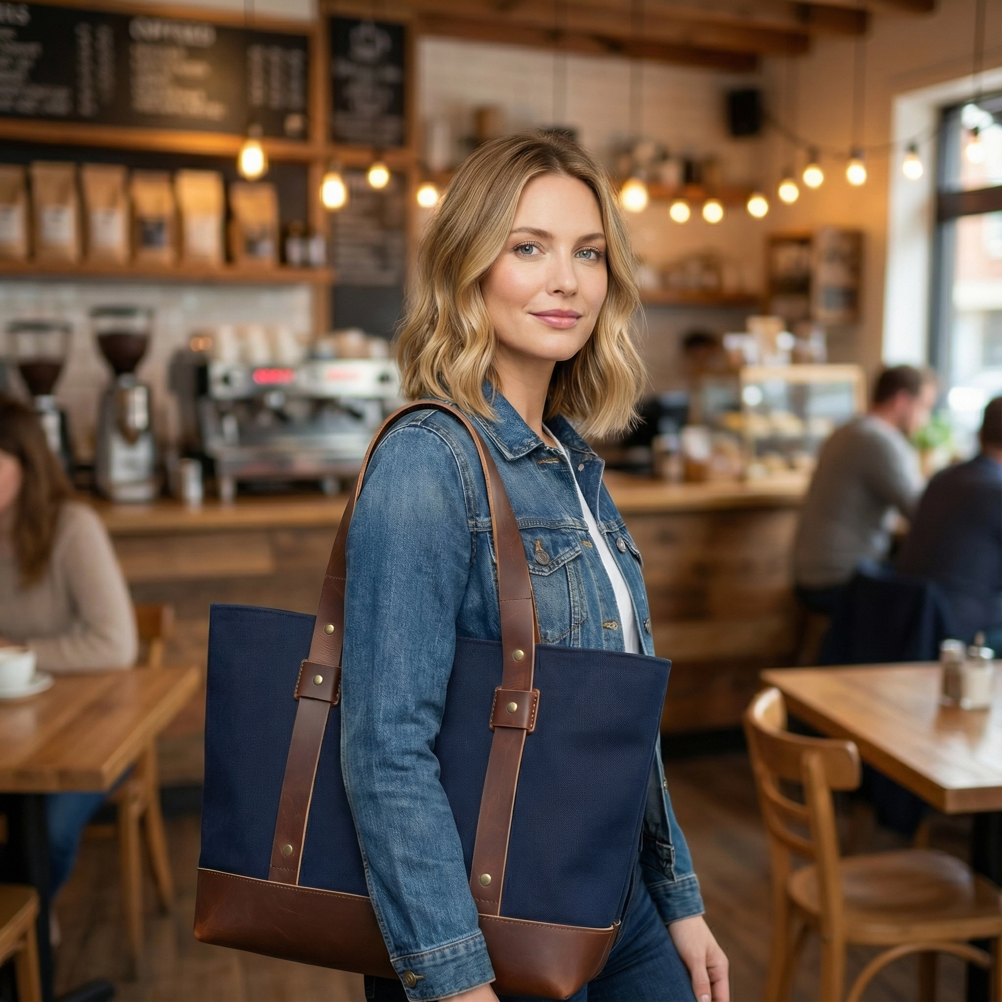 Structured Canvas Tote With Leather Trim And Reinforced Base, Best Gift, Best Sell, Extra Sale