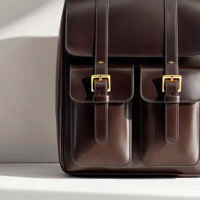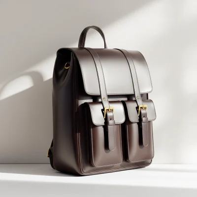 A refined leather backpack with a clean structure, balanced proportions, and functional front pockets.