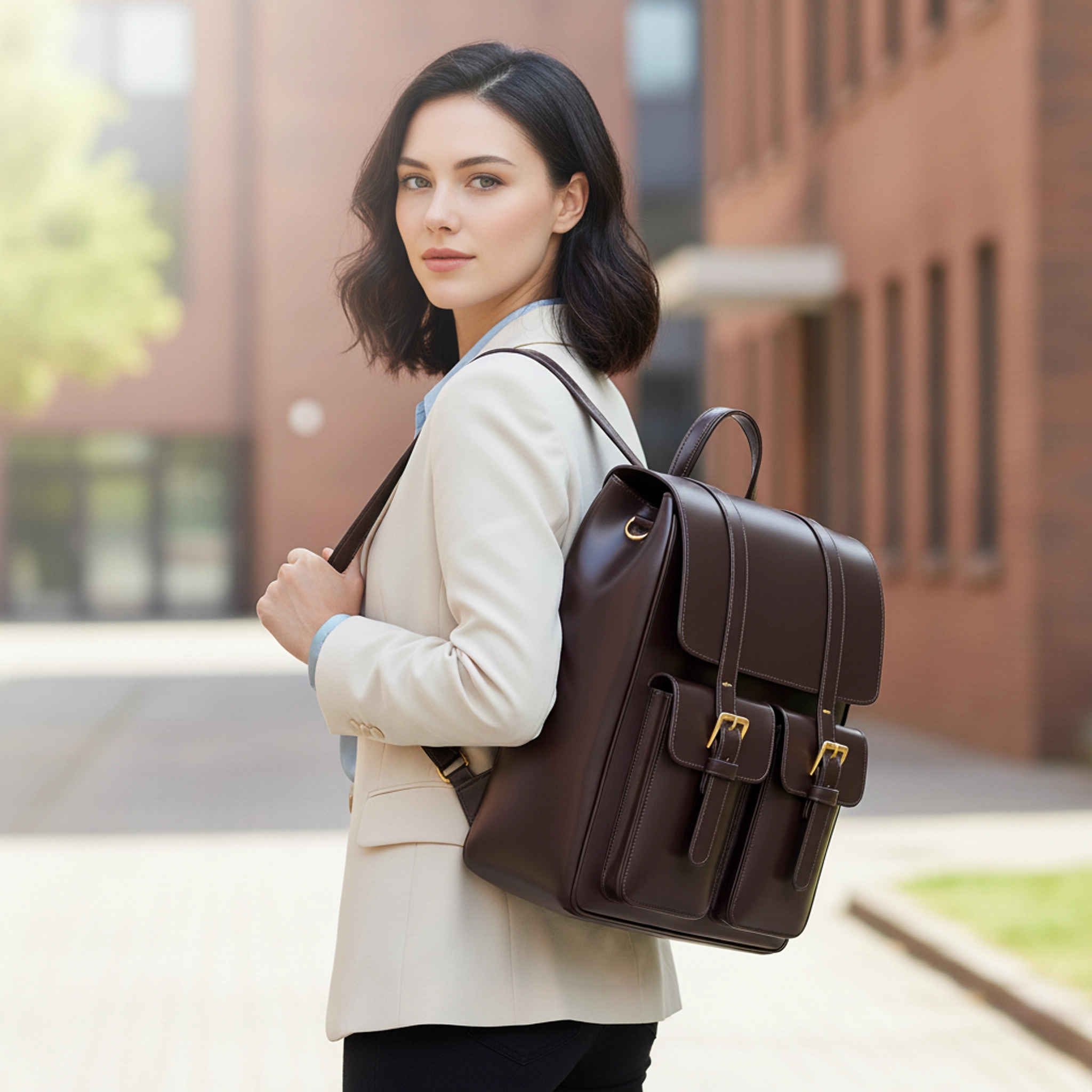 The Best Structured Leather Backpack with Dual Buckle Pockets, Free Shipping, Extra Sale Today